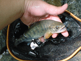 一発でごらんのチビちゃん岩魚がかかってきまし。