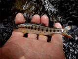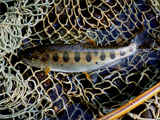 釣りあがって約15分、釣れたのはご覧のアマゴくん。